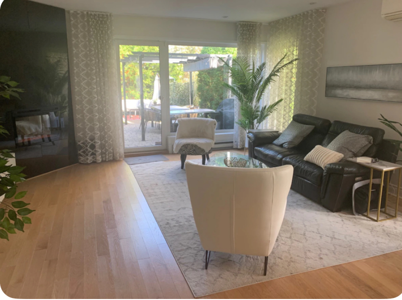 Grande condo de coin lumineux de 3 CAC meublé à louer, Situé directement dans un parc avec des espaces à aire ouverte ce condo te grande qualité est spacieux et fonctionnels. Grande fenestration. 3 chambres et un sous sol pouvant servir de chambre supplémentaire ou de bureau. Plancher de bois franc partout sauf salles de bain et cuisine. Cuisine entièrement rénovée avec un grand comptoir quartz. Orientation parfaite pour la grande terrasse aménagée, un espace de stationnement intérieur inclus, casier béton adjacent. À distance de marche d’une école primaire, des épiceries, centre d’achat, etc et du REM